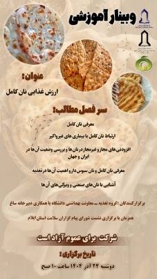 برگزاری وبینار آموزشی «ارزش غذایی نان کامل»